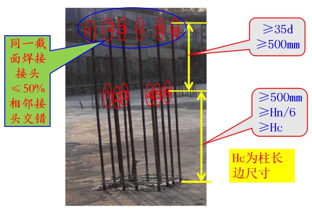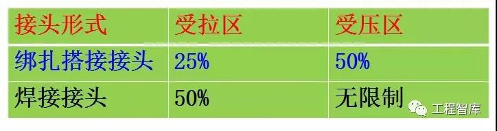 所有接长接头相互错开,采用焊接的接头时,从任一接头中心至长度为钢筋直径的35且不小于500mm的区段范围内,有接头的受力钢筋截面面积占受力钢筋总截面面积百分比如下: