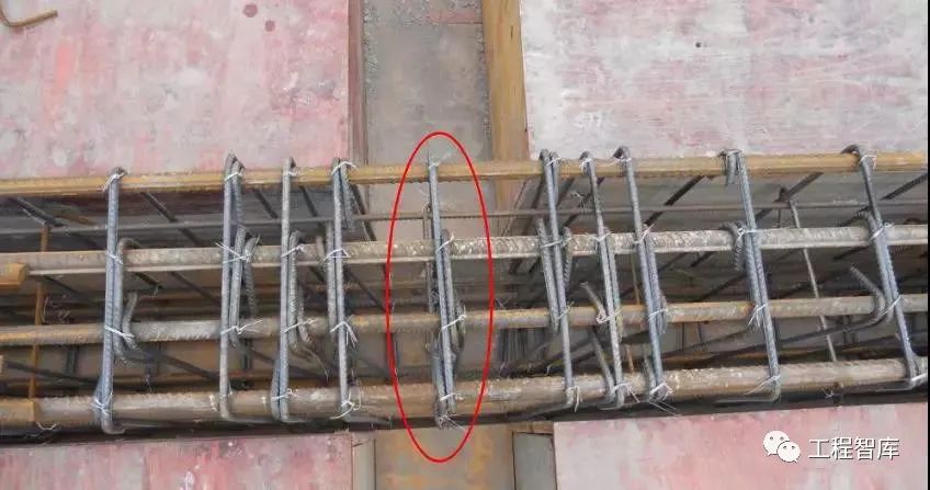 梁底板角筋全数绑扎,中间纵筋跳扎,拉钩设置到位