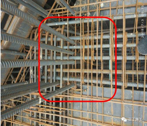 梁底板角筋全数绑扎,中间纵筋跳扎,拉钩设置到位