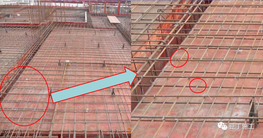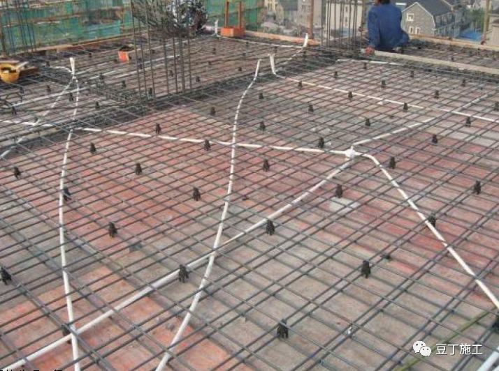 4、板钢筋绑扎时应防止水电管线将钢筋抬起或压下 。