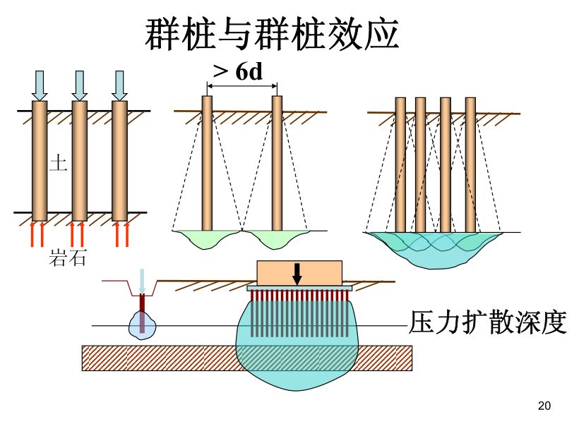桩基础的作用是将荷载传至地下较深处承载性能好的土层,以满足承载力和沉降的要求。桩基础的承载能力高,能承受竖直荷载,也能承受水平荷载,能抵抗上拔荷载也能承受振动荷载,是应用最广泛的深基础形式。