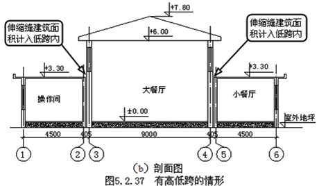25、与室内相通的变形缝,应按其自然层合并在建筑物建筑面积内计算。对于高低联跨的建筑物,当高低跨内部连通时,其变形缝应计算在低跨面积内。