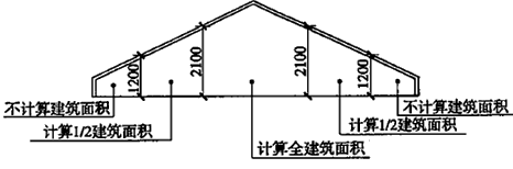 18、围护结构不垂直于水平面的楼层,应按其底板面的外墙外围水平面积计算。结构净高在2.10m及以上的部位,应计算全面积;结构净高在1.20m及以上至2.10m以下的部位,应计算1/2面积;结构净高在1.20m以下的部位,不应计算建筑面积。