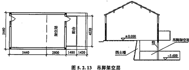 7、建筑物架空层及坡地建筑物吊脚架空层,应按其顶板水平投影计算建筑面积。结构层高在2.20m及以上的,应计算全面积;结构层高在2.20m以下的,应计算1/2面积。