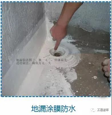 地漏、下水口涂膜应严格按操作规程要求施工,地漏、下水口管壁应清理干净,使涂膜粘贴牢固,并深入口内不小于50mm。