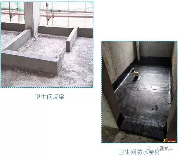 防水材料不合格,涂刮铺贴不均匀,粘结不牢,局部漏铺等。