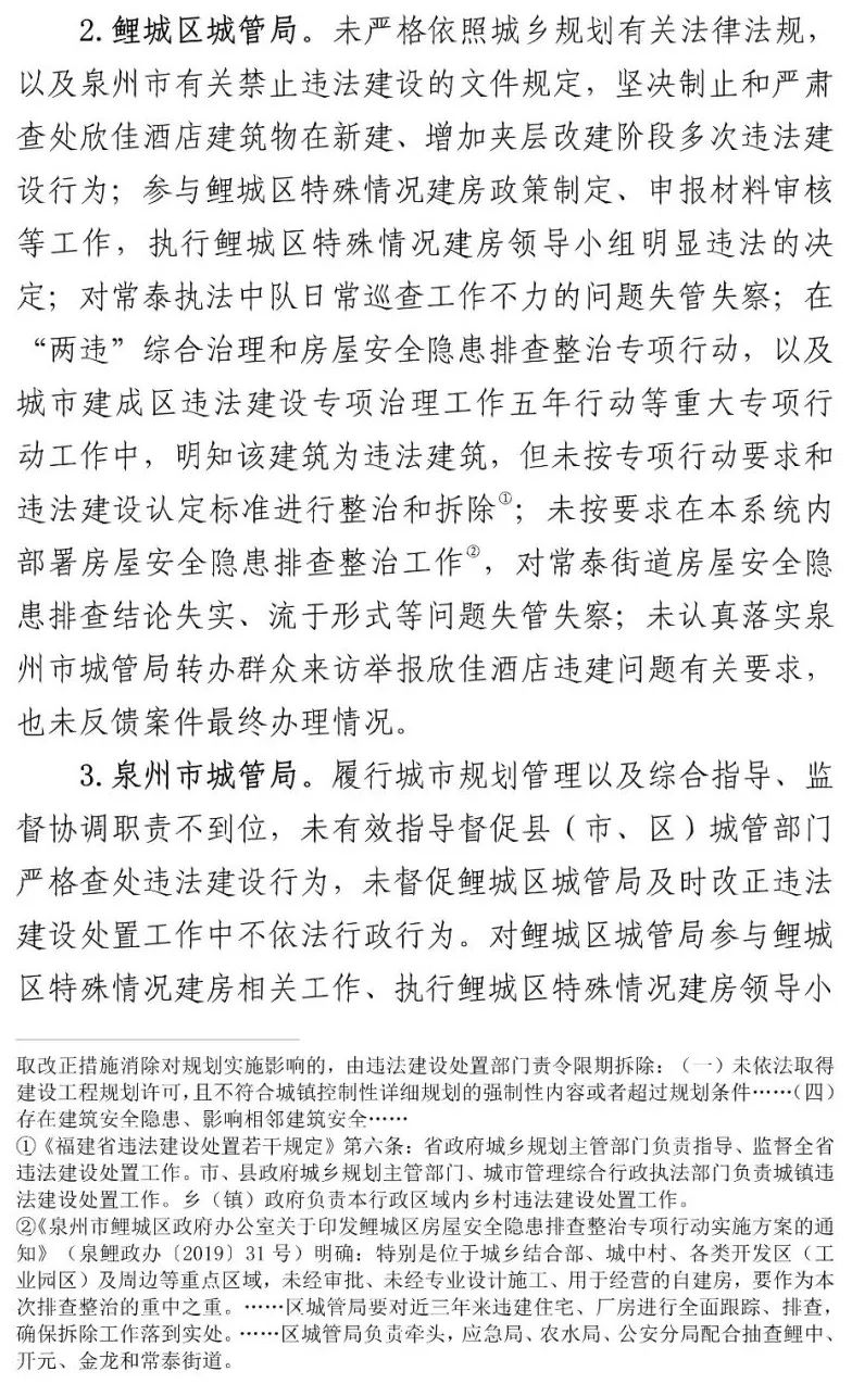 2.钟文成,泉州市住房和城乡建设局党组书记、局长,给予党内严重警告处分。