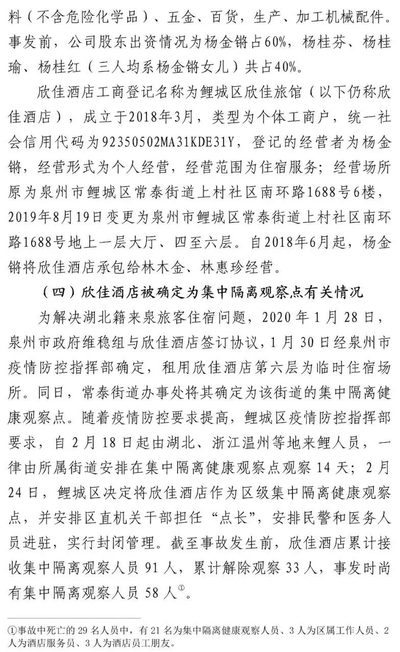 泉州市新星机电工贸公司、欣佳酒店实际控制人杨金锵以涉嫌重大责任事故罪、伪造国家机关证件罪于4月9日被逮捕;