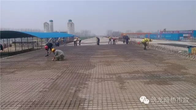 基本同设立同设立振捣梁轨道方式进行。标高带浇筑完毕后,在同一里程桩号标高带顶带线调整钢筋网的平面位置及顶面距拉线垂直距离,将钢筋网与预埋保护层钢筋点焊连接牢固。