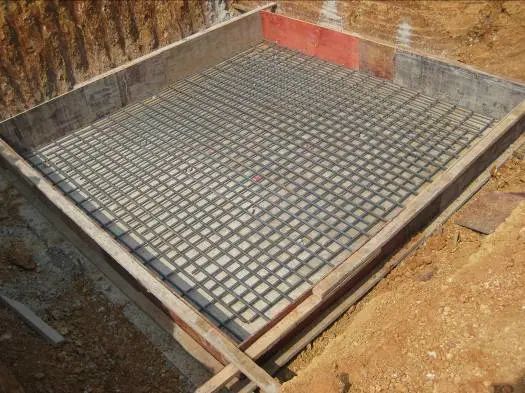 1)按弹出的钢筋位置线,先铺下层钢筋。根据底板受力情况,决定下层钢筋哪个方向钢筋在下面,一般情况下先铺短向钢筋,再铺长向钢筋。