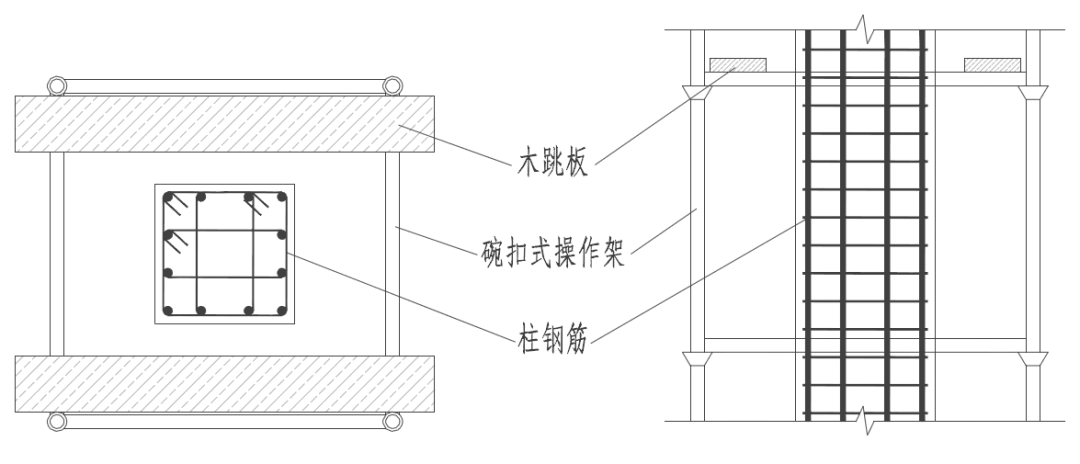 1)根据弹好的肋板(立柱)位置线,将肋板(立柱)伸入基础的插筋绑扎牢固,插入基础深度要符合设计要求,甩出长度不宜过长,其上端应采取措施保证甩筋垂直,不歪斜、倾倒、变位。