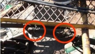 (2)原厂的斜拉断裂后,维保单位自行改装的斜拉。