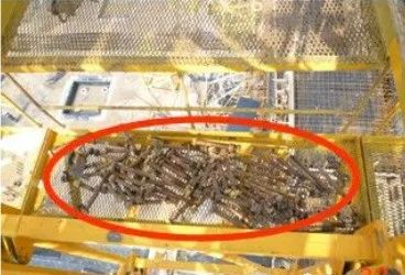 一旦铅丝承受不了其拉力发生断裂,而此时标准节正好在引进平台上易发生标准节高处坠落。