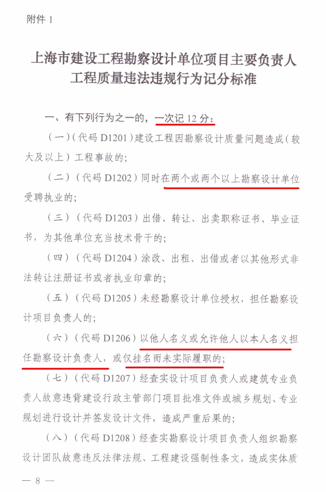 以他人名义或允许他人以本人名义担任勘察设计负责人,或仅挂名而未实际履职的(一次记12分)