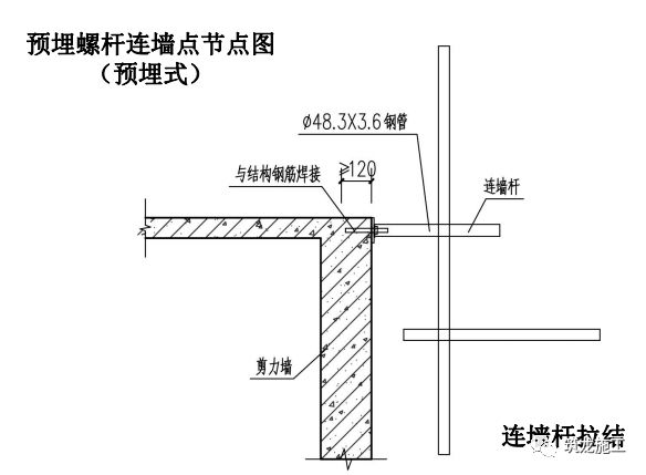 1. 外架连墙件分为两种:预埋式和穿墙式。