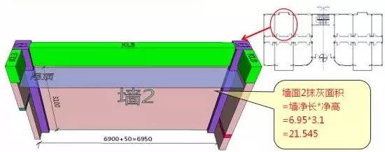 很显然,这里高度扣除了踢脚高度,也就是说,计算墙面块了面积是要扣除踢脚的。