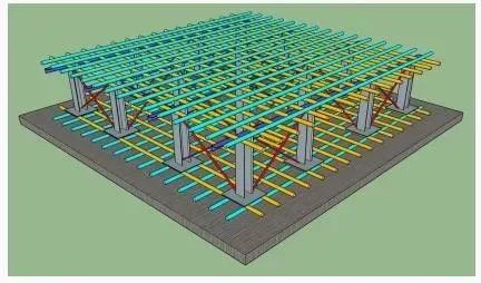 4.3.1 梁板式筏板(底板位)基础钢筋模型图,如图 9-6 所示。