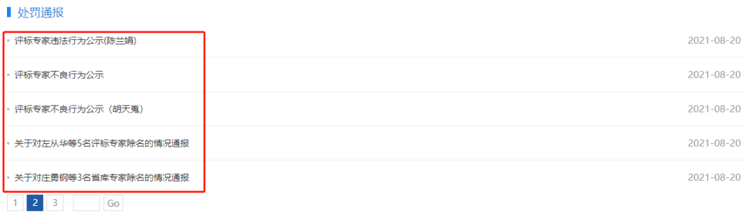 9月16日,浙江省综合性评标专家库网站发布两则处罚通报,而在不久前,已有多名评标专家被通报,其中多人被判刑。