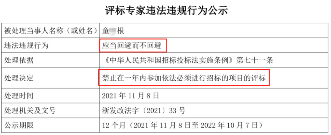 11月18日,浙江省评标专家库发布一则《评标专家违法行为公示》。