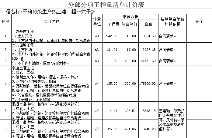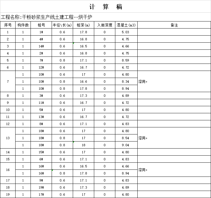 13、桩与地基处理:锚杆支护、土钉支护(支护面积)。