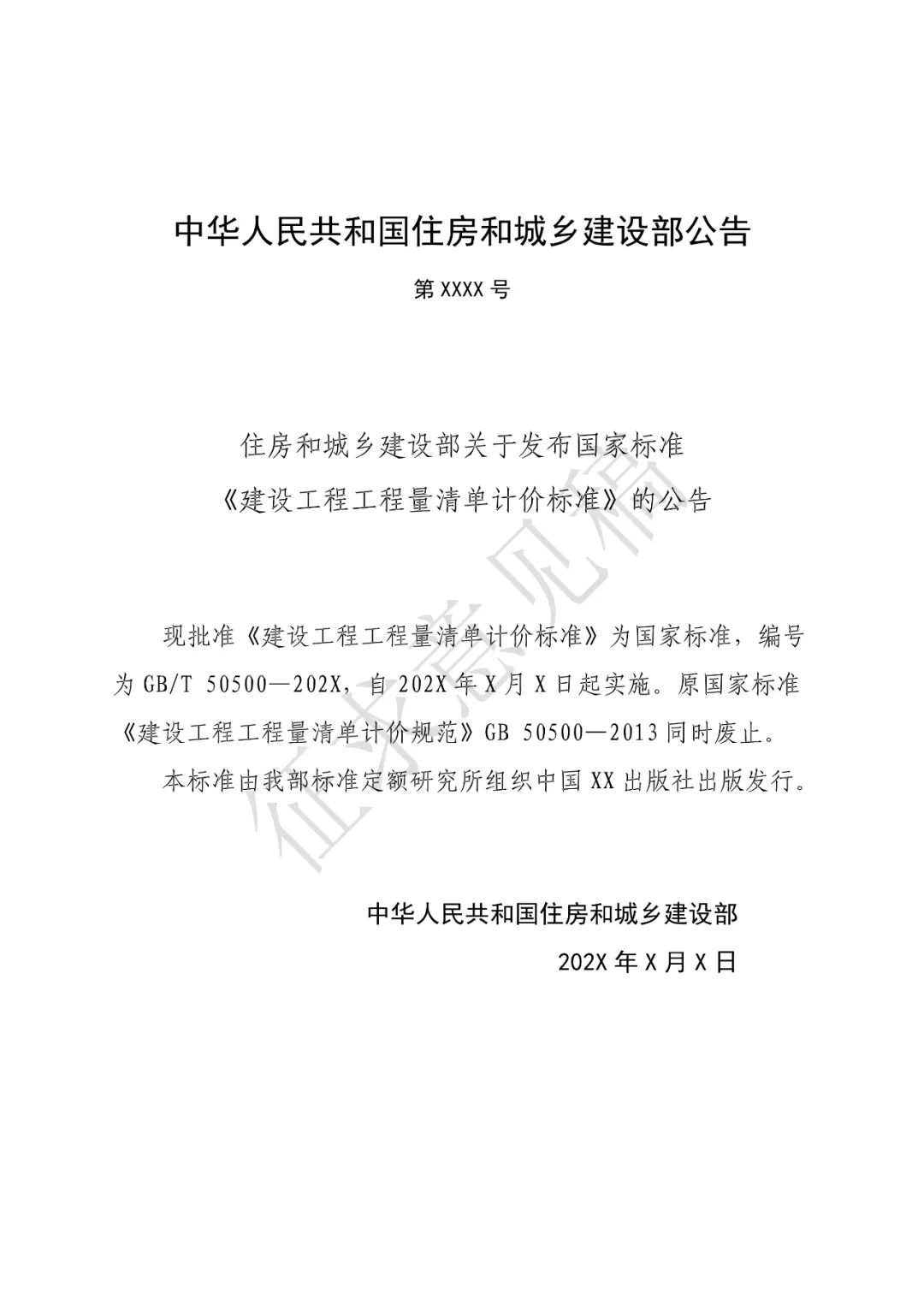 为完善工程造价市场化形成机制,进一步统一工程计价规则,我们对《建设工程工程量清单计价规范》(GB 50500-2013)进行了修订,形成《建设工程工程量清单计价标准》(征求意见稿),现送你们征求意见。请于12月15日前将书面意见反馈我司。