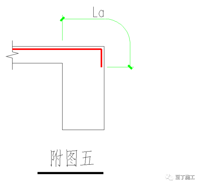 5、现浇板支座处配筋中间支座处板顶标高不同时,负筋在梁或墙内的锚固应满足受拉钢筋最小锚固长度的要求,构造详见附图五: