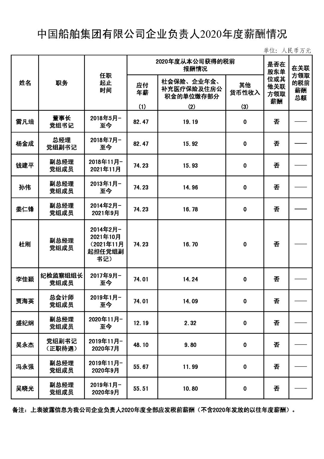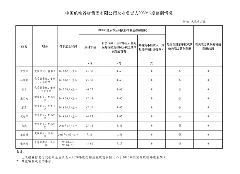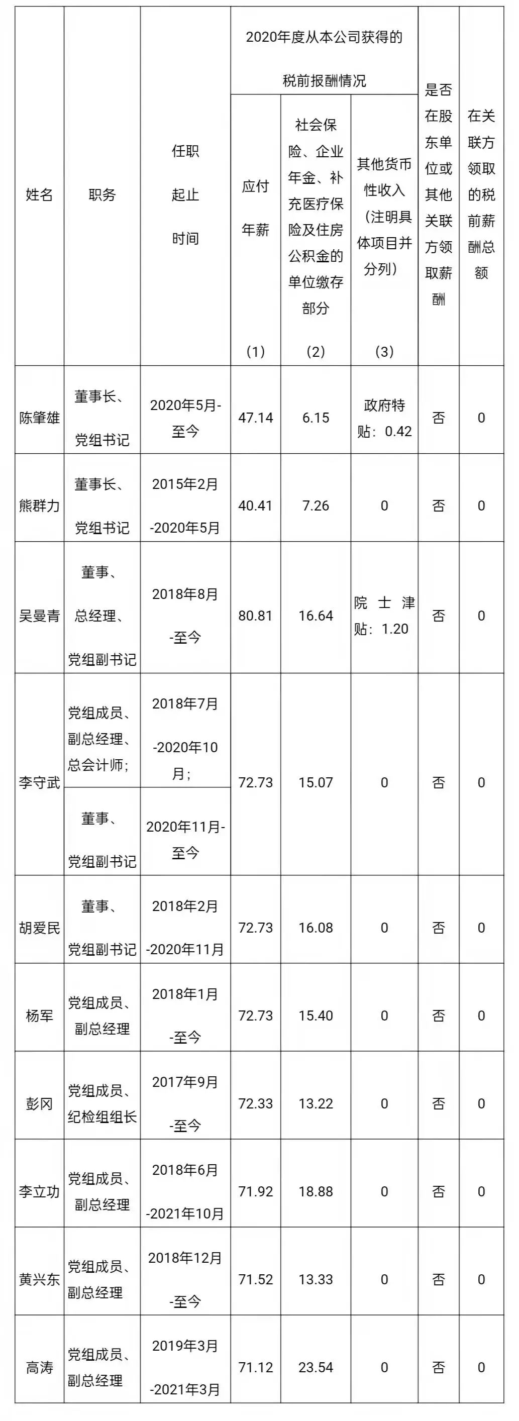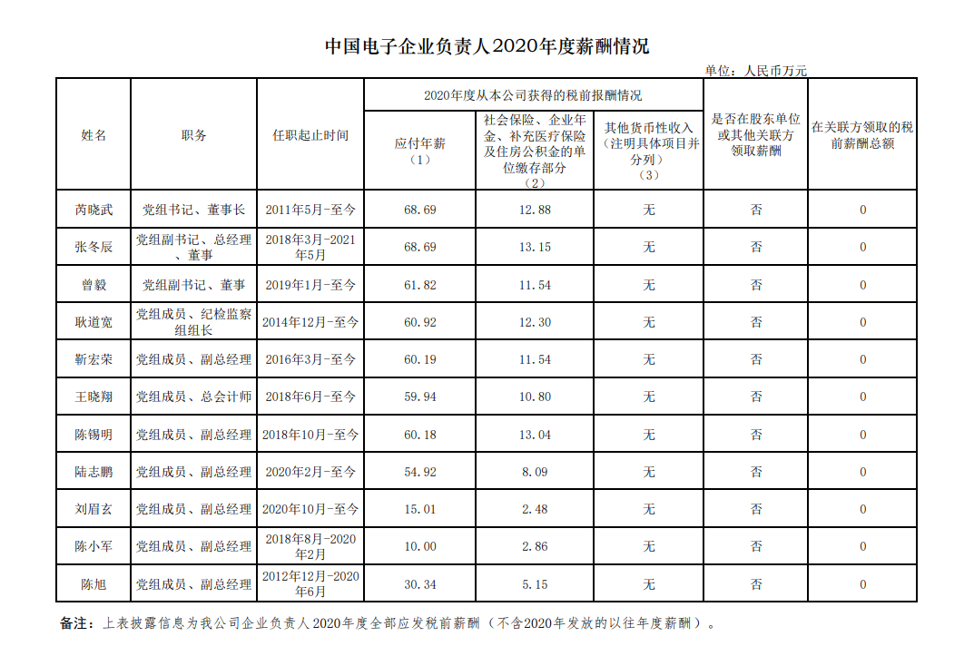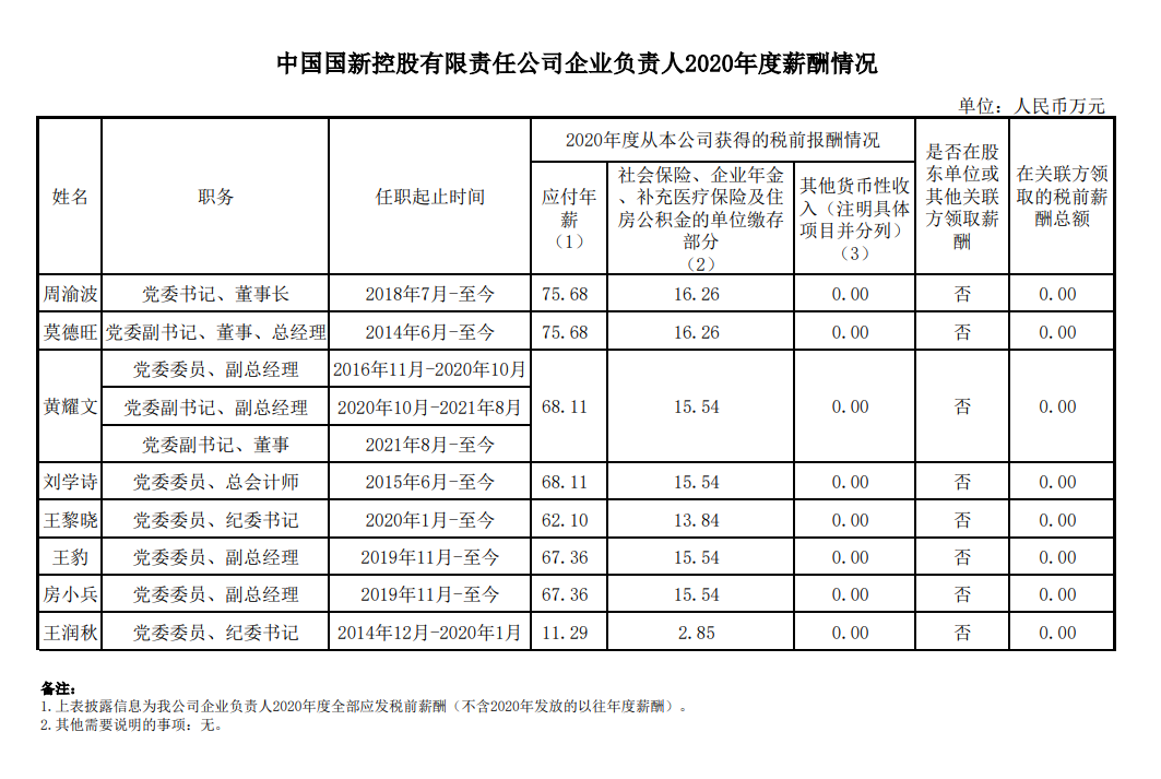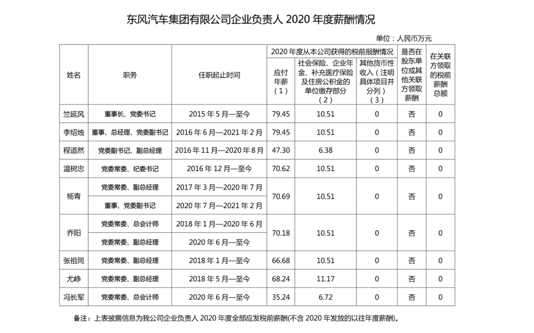 注:如有中央企业一把手在2020年内发生人事变更,该表优先选取2020年内在职时间较长人员。如需了解各中央企业所有负责人2020年度薪酬情况请在下方查看。