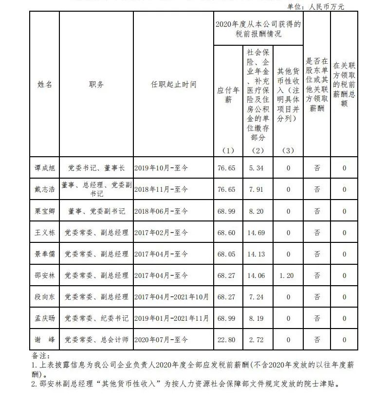 央企一把手的2020年度应付年薪明细,一起来看↓
