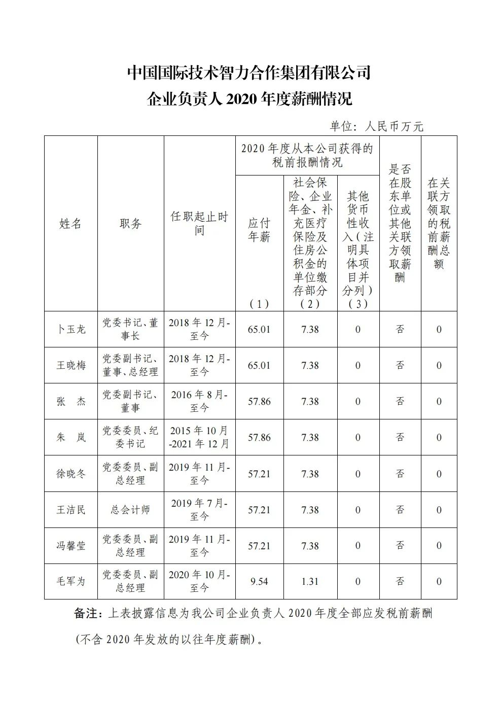 2020年度中央企业负责人