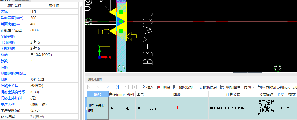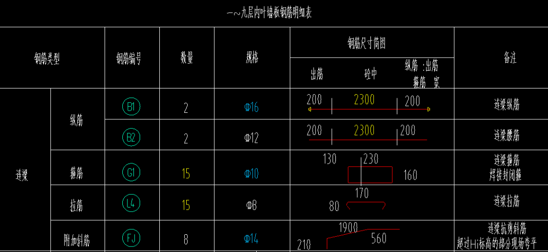 以本项目的LL5为例,连梁配筋见连梁表。连梁表中的截面信息、上部纵筋、下部纵筋、侧面纵筋、箍筋、交叉配筋是否都按连梁表中输入呢?具体需要与预制墙构件加工图结合起来看。