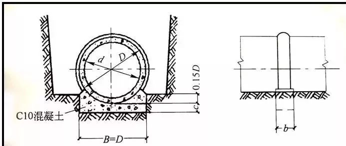 适用于土壤条件非常好、无地下水的地区,管道直径小于600mm,管顶覆土厚度在0.7-2.0m之间的管道,不在车行道下的次要管道及临时性管道。