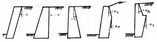重力式挡土墙可根据其墙背的坡度分为以下几种类型(如下图):