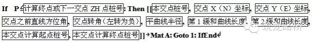 每个方框就是一个数据,共11个方框,其中第一个方框是交点定位的判别依据,我这里称之为交点定位临界点,其余10个方框是定义为矩阵Mat A的十个因子的,是交点的主要数据,其中前面八个数据意义非常明确,这里就不啰嗦了,而最后两个数据,一个是交点的计算起点桩号,一个是交点的计算终点桩号,这两个起终点桩号,就构成了交点计算范围。