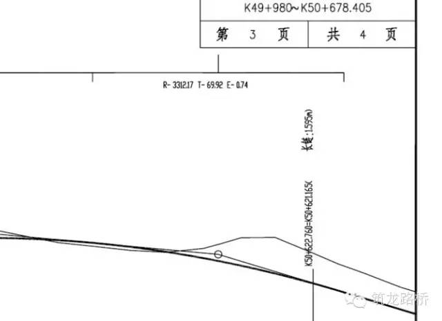 K50+622.760 = K50+621.166。很显然,这是一个等式,从数学的角度来看,等式显然不成立,不等于还差不多。但是,这不是数学等式,它表示的是新老桩号的交汇点(即断链点)。只要看懂了这个等式,就不管再标记什么长链、短链,长多少、短多少,不管在平面图、纵断面图上是否再有标记,一切都不重要了,换句话讲,你理解了这个等式,其它的你就可以自行确定了。