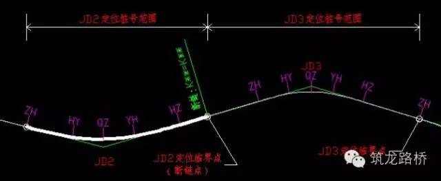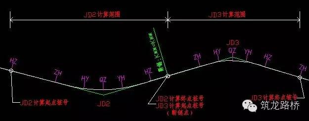 (2)对于断链点之后的交点,交点计算范围则从断链点开始(桩号为老桩号,即等式之后的那个桩号),至下一交点的ZH点结束。