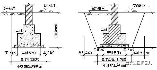 为保证工人的正常操作,基底宽度应在基础宽度的基础上增加工作面宽度2C。