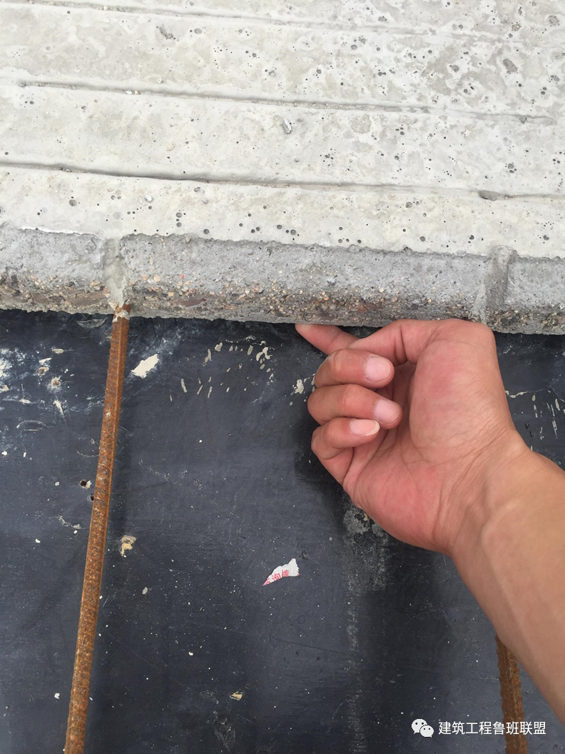 2、板带位置模板支撑加固不到位,浇筑砼后导致模板变形漏浆。