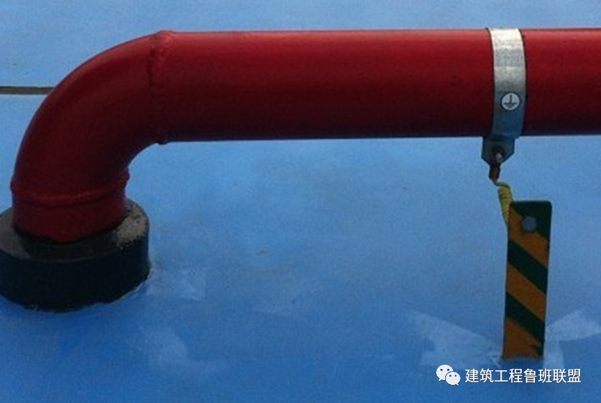 工艺说明:屋面外露的其他金属构件必须与避雷带连成一个整体的电气通路。各构件不得串接,必须单独与接地干线相连。