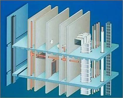 包括:防火隔板、防火喷涂矿棉板,机械强度高,适用于较大孔洞、兼顾承载功能。