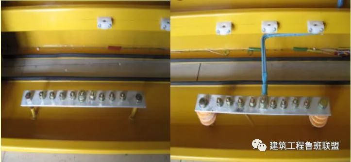 (三)配电箱(柜)、开关箱应分设N线、PE线端子板,进出线必须通过端子板做可靠连接。N线端子板必须与金属电器安装板绝缘;PE线端子板必须与金属电器安装板做电气连接。进出线中的N线必须通过N线端子板连接;PE线必须通过PE线端子板连接。PE线与端子板连接必须采用电气连接,电气连接点的数量应比箱体内回路数量多2个,1个为PE线进箱体的连接点,1个为重复接地的连接点。