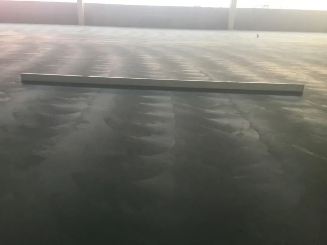 8、振浆后,混凝土泌水要均匀,对于有水窝现象,须设法清除,重新找平,否则金刚砂地坪施工无法保证平整度。