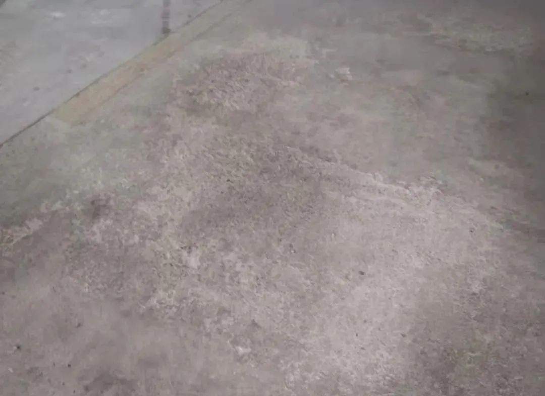 3)养护问题,采用覆盖塑料薄膜养护方式,导致地面水分挥发不均匀;薄膜与地坪接触的地方颜色泛白,未接触的地方颜色正常。