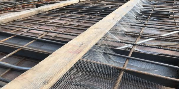(1)根据方案要求确定分仓缝位置,分仓缝位置采用钢丝网或快易收口网拦截,顶部采用40x90木方固定。