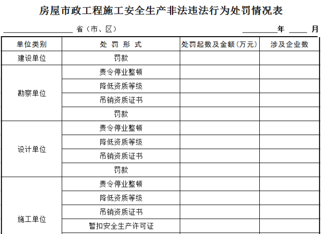 2.房屋市政工程施工安全生产非法违法行为处罚情况表