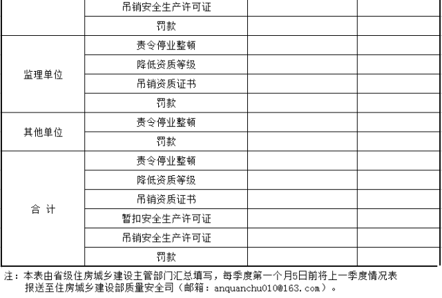 附件:1.房屋市政工程生产安全事故企业安全生产许可证处罚情况表(一)、(二)
